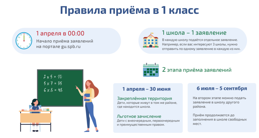 Уважаемые родители! Прием заявлений в 1 класс начнется с 1 апреля 2025 года. Прием будет проходить в два этапа! На первом этапе в школу принимают детей, имеющих преимущественное право зачисления, и тех, кто живет на прикрепленной к школе территории. На втором этапе, если остались свободные места, могут зачислить детей, не проживающих на закрепленной за школой территории. Напомним, что в первый класс принимают детей в возрасте от 6,5 до 8 лет.
